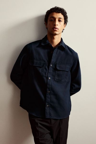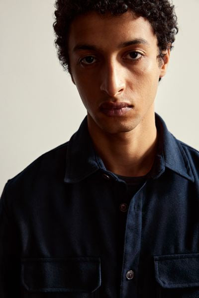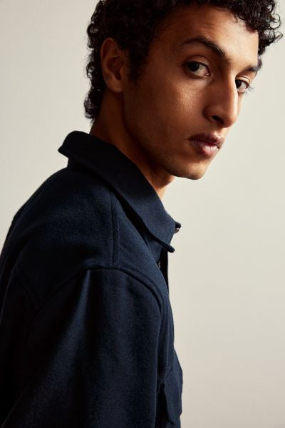 SKU143Regular Fit Felted overshirt -Navy Blue-1227148006